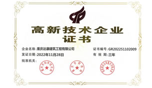 重慶達康建筑工程有限公司,于1993年8月注冊成立,公司注冊資金6128.71萬元,在職員工110余人,其中本科及以上學歷約40%-50%,擁有一、 二級注冊建造師數(shù)十人,擁有中級以上職稱數(shù)十人,各類從業(yè)資格證及上崗證書若干。公司擁有專業(yè)的技術(shù)施工人員和高效的管理團隊, 能充分滿足并獨立承擔與資質(zhì)相匹配的工程施工需要;多次榮獲重慶市九龍坡區(qū)“守合同重信用單位”稱號,多次獲得“三峽杯”優(yōu)質(zhì)結(jié)構(gòu)獎和市級文明工地;合同履約率達到100%。